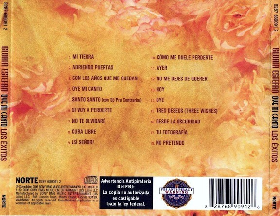 Artista(s) / Grupo: Gloria Estefan | Cantidad de Discos: 1 | Lanzamiento: 2006 | Género(s): Rock, Latin, Pop | Estilo(s): Latin | Título: Oye Mi Canto | Artista(s) / Grupo: Gloria Estefan | Cantidad de Discos: 1 | Lanzamiento: 2006 | Género(s): Rock, Latin, Pop | Estilo(s): Latin | Título: Oye Mi Canto