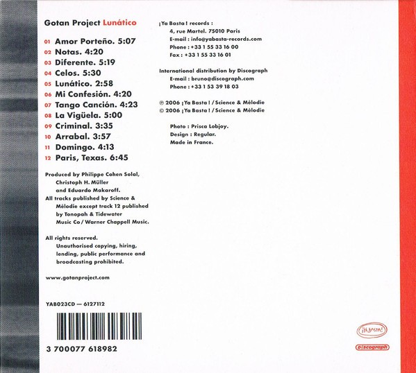 Artista(s) / Grupo: Gotan Project | Cantidad de Discos: 1 | Lanzamiento: 2006 | Género(s): Electronic | Estilo(s): Downtempo, Trip Hop, Tango | TÃtulo: Lunatico | Artista(s) / Grupo: Gotan Project | Cantidad de Discos: 1 | Lanzamiento: 2006 | Género(s): Electronic | Estilo(s): Downtempo, Trip Hop, Tango | TÃtulo: Lunatico