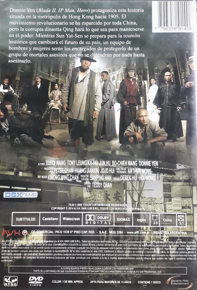 Cantidad de Discos: 1 | Lanzamiento: 2009 | Género(s): Acción, Artes Marciales | Audio: Chino (Dolby Digital 5,1), Inglés (Dolby Digital 2,0) | Subtítulos: Español | Título: Shi yue wei cheng (Bodyguards and Assassins) | Director(es): Teddy Chan | Reparto: Donnie Yen, Wang Xueqi, Tony Leung Ka-Fai, Nicholas Tse, Hu Jun, Eric Tsang, Li Yuchun, Simon Yam, Fan Bingbing, Zhou Yun, Wang Po-Chieh, Leon Lai, Mengke Bateer, Cung Le, Zhang Hanyu, Jacky Cheung, Michelle Reis | Cantidad de Discos: 1 | Lanzamiento: 2009 | Género(s): Acción, Artes Marciales | Audio: Chino (Dolby Digital 5,1), Inglés (Dolby Digital 2,0) | Subtítulos: Español | Título: Shi yue wei cheng (Bodyguards and Assassins) | Director(es): Teddy Chan | Reparto: Donnie Yen, Wang Xueqi, Tony Leung Ka-Fai, Nicholas Tse, Hu Jun, Eric Tsang, Li Yuchun, Simon Yam, Fan Bingbing, Zhou Yun, Wang Po-Chieh, Leon Lai, Mengke Bateer, Cung Le, Zhang Hanyu, Jacky Cheung, Michelle Reis