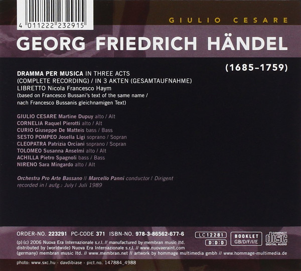 HANDEL / MARTINE DUPUIS / PATRIZIA ORCIANI / RAQUEL PIEROTTI / JOSELLA LIGI / SUSSANA ANSLEMI / ORCHESTRA PRO ARTE BASSANO / MARCELLO PANNI – GIULIO CESARE