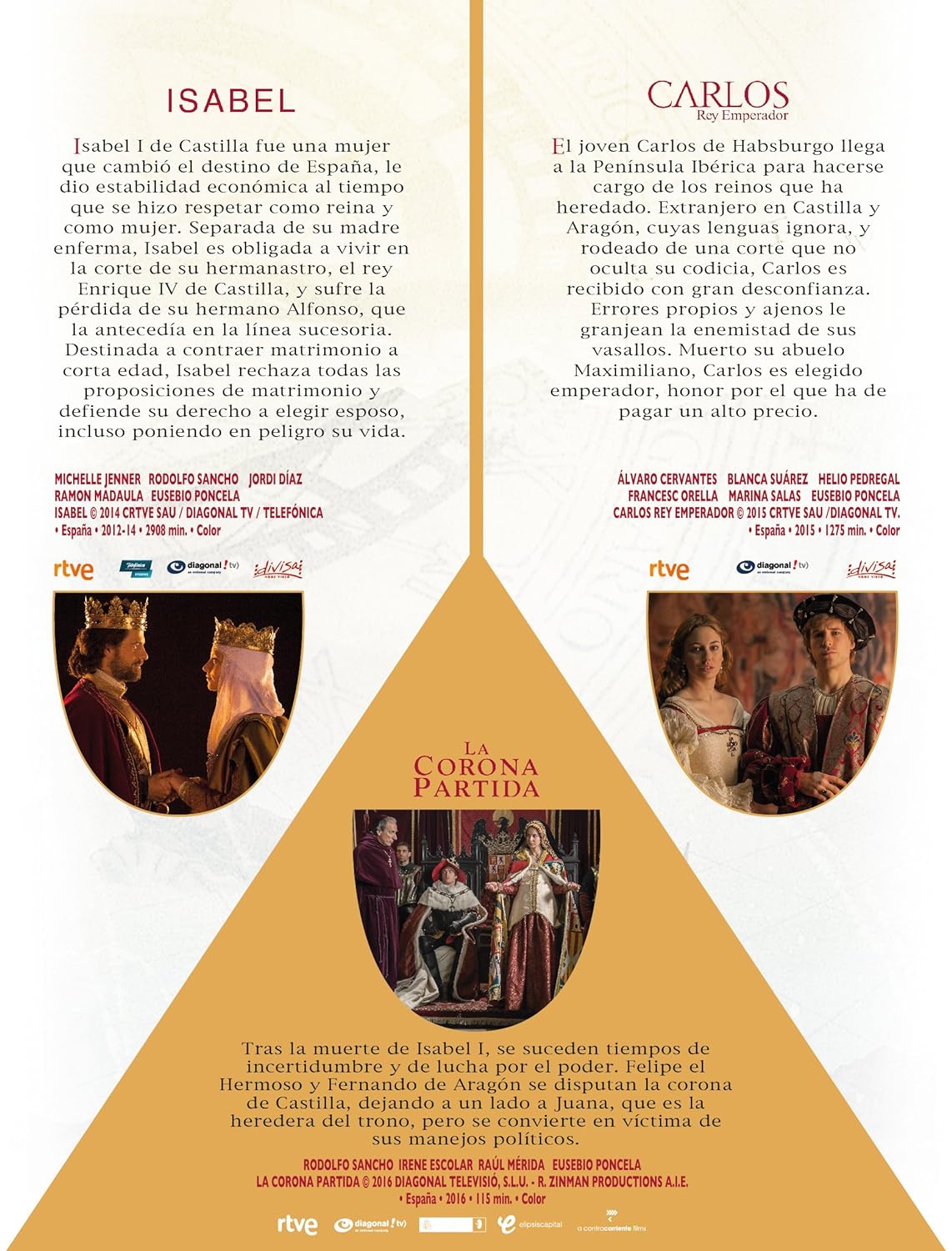 Título: Isabel (2012) / Carlos, Rey Emperador (2015) / La corona partida (2016)