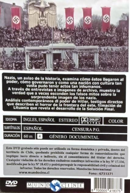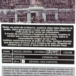 Cantidad de Discos: 1 | Lanzamiento: 2002 | Género(s): Documental | Audio: Inglés, Español | SubtÃtulos: Español | TÃtulo: Historia y Secretos Inéditos del Nazismo | Norma / Región: Multizona (Disco Quemado) | Cantidad de Discos: 1 | Lanzamiento: 2002 | Género(s): Documental | Audio: Inglés, Español | SubtÃtulos: Español | TÃtulo: Historia y Secretos Inéditos del Nazismo | Norma / Región: Multizona (Disco Quemado)