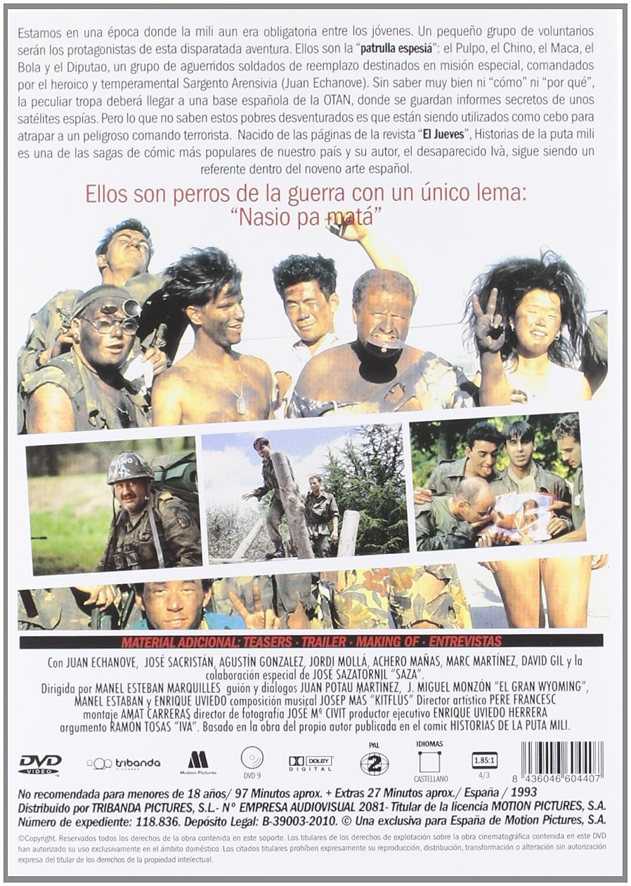 Cantidad de Discos: 1 | Lanzamiento: 2000 | Género(s): Comedia | Audio: Español | TÃtulo: Historias de la Puta Mili | Director(es): Manuel Esteban | Reparto: Juan Echanove, Jordi Mollà , Achero Mañas, Marc MartÃnez, David Gil, Carles Romeu, José Sazatornil, AgustÃn González, José MarÃa Cañete | Norma / Región: PAL (Región 2) | Cantidad de Discos: 1 | Lanzamiento: 2000 | Género(s): Comedia | Audio: Español | TÃtulo: Historias de la Puta Mili | Director(es): Manuel Esteban | Reparto: Juan Echanove, Jordi Mollà , Achero Mañas, Marc MartÃnez, David Gil, Carles Romeu, José Sazatornil, AgustÃn González, José MarÃa Cañete | Norma / Región: PAL (Región 2)