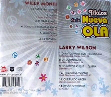 Artista(s) / Grupo: Willy Monti / Larry Wilson | Cantidad de Discos: 1 | Lanzamiento: 2017 | Género(s): Pop | Estilo(s): Vocal, Ballad, Latin | TÃtulo: Idolos De La Nueva Ola | Artista(s) / Grupo: Willy Monti / Larry Wilson | Cantidad de Discos: 1 | Lanzamiento: 2017 | Género(s): Pop | Estilo(s): Vocal, Ballad, Latin | TÃtulo: Idolos De La Nueva Ola | Artista(s) / Grupo: Willy Monti / Larry Wilson | Cantidad de Discos: 1 | Lanzamiento: 2017 | Género(s): Pop | Estilo(s): Vocal, Ballad, Latin | TÃtulo: Idolos De La Nueva Ola