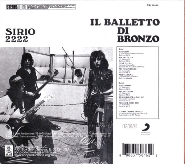 Artista(s) / Grupo: Il Balletto Di Bronzo | Cantidad de Discos: 1 | Lanzamiento: 2014 | Género(s): Rock | Estilo(s): Psychedelic Rock, Prog Rock | TÃtulo: Sirio 2222 | Artista(s) / Grupo: Il Balletto Di Bronzo | Cantidad de Discos: 1 | Lanzamiento: 2014 | Género(s): Rock | Estilo(s): Psychedelic Rock, Prog Rock | TÃtulo: Sirio 2222