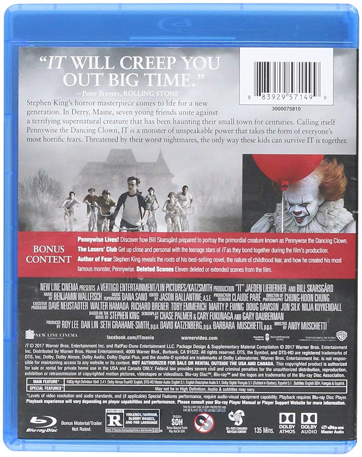 Reparto: Bill Skarsgård, Jaeden Martell, Sophia Lillis, Finn Wolfhard, Wyatt Oleff, Jeremy Ray Taylor, Jack Dylan Grazer, Chosen Jacobs, Nicholas Hamilton, Jake Sim, Logan Thompson, Owen Teague, Jackson Robert Scott, Javier Botet, Stephen Bogaert, Stuart Hughes, Geoffrey Pounsett, Megan Charpentier, Isabelle Nelisse, Tatum Lee, Pip Dwyer, Molly Atkinson, Steven Williams, Elizabeth Saunders, Joe Bostick, Ari Cohen, Anthony Ulc, Edie Inksetter, Martha Gibson, Donald Tripe, Liz Gordon, Neil Crone, Janet Porter