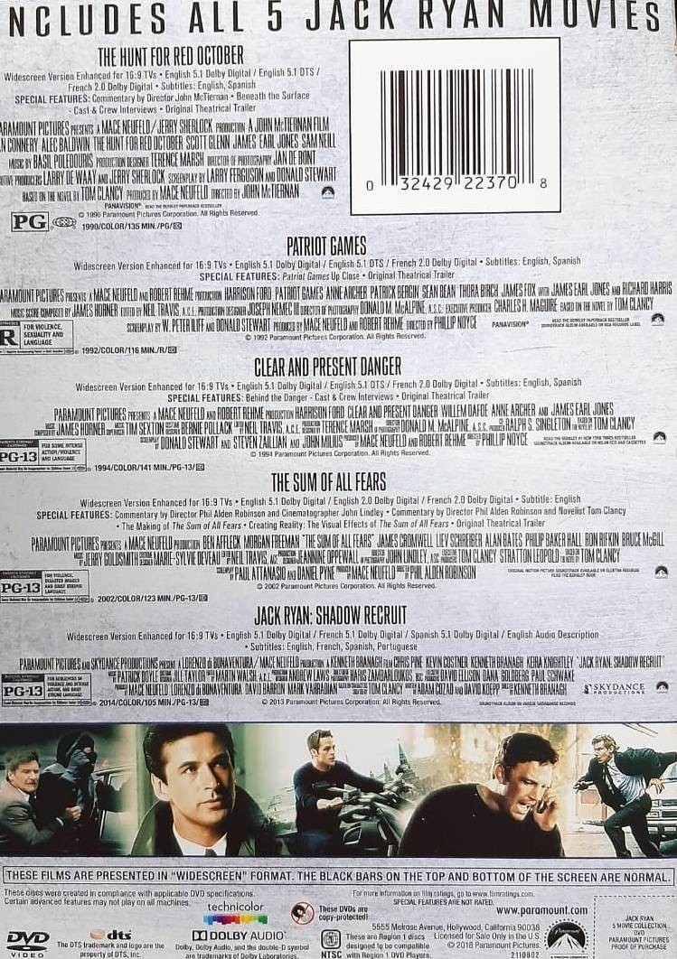 TÃtulo: Jack Ryan: Código Sombra (2014) / La caza del Octubre rojo (1990) / Juego de patriotas (1992) / La suma de todos los miedos (2002) / Peligro inminente (1994)