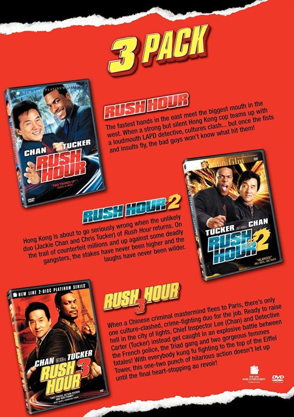 Cantidad de Discos: 4 | Género(s): Acción , Comedia. | Audio: Inglés | SubtÃtulos: Español, Inglés | TÃtulo: Rush Hour 3 Pack | Director(es): Brett Ratner | Norma / Región: NTSC 1 | Cantidad de Discos: 4 | Género(s): Acción , Comedia. | Audio: Inglés | SubtÃtulos: Español, Inglés | TÃtulo: Rush Hour 3 Pack | Director(es): Brett Ratner | Norma / Región: NTSC 1