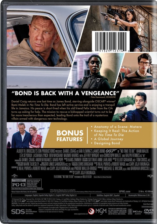 Reparto: Daniel Craig, Léa Seydoux, Rami Malek, Lashana Lynch, Ralph Fiennes, Naomie Harris, Christoph Waltz, Ben Whishaw, Ana de Armas, Jeffrey Wright, Rory Kinnear, Dali Benssalah, Billy Magnussen, David Dencik, Julian Ferro, Toby Sauerback, Ty Hurley, Paul O’Kelly, Lampros Kalfuntzos, Ahmed Bakare, Pio Amato