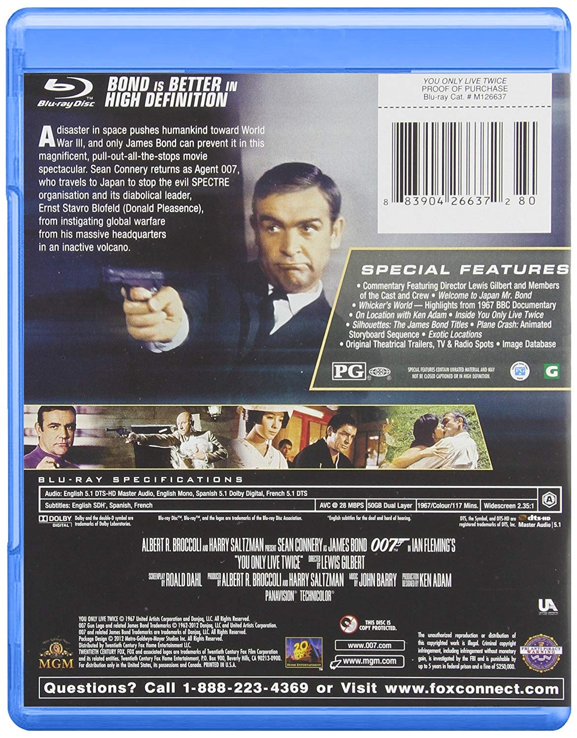 Reparto: Sean Connery, Donald Pleasence, Akiko Wakabayashi, Tetsurô Tanba, Mie Hama, Karin Dor, Lois Maxwell, Desmond Llewelyn, Charles Gray, Tsai Chin, Bernard Lee, Alexander Knox //
