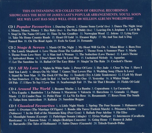 Artista(s) / Grupo: James Last | Cantidad de Discos: 5 | Lanzamiento: 2010 | Estilo(s): Clásica – Opera Ballet | TÃtulo: Music of James Last: 100 Popular Classics | Artista(s) / Grupo: James Last | Cantidad de Discos: 5 | Lanzamiento: 2010 | Estilo(s): Clásica – Opera Ballet | TÃtulo: Music of James Last: 100 Popular Classics