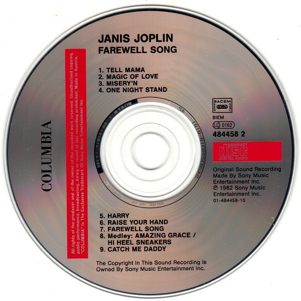 Artista(s) / Grupo: Janis Joplin | Cantidad de Discos: 1 | Lanzamiento: 2015 | Género(s): Rock | Estilo(s): Blues Rock, Classic Rock | Título: Farewell Song | Norma / Región: NTSC (Región 1, 4) | Artista(s) / Grupo: Janis Joplin | Cantidad de Discos: 1 | Lanzamiento: 2015 | Género(s): Rock | Estilo(s): Blues Rock, Classic Rock | Título: Farewell Song | Norma / Región: NTSC (Región 1, 4) | Artista(s) / Grupo: Janis Joplin | Cantidad de Discos: 1 | Lanzamiento: 2015 | Género(s): Rock | Estilo(s): Blues Rock, Classic Rock | Título: Farewell Song | Norma / Región: NTSC (Región 1, 4)