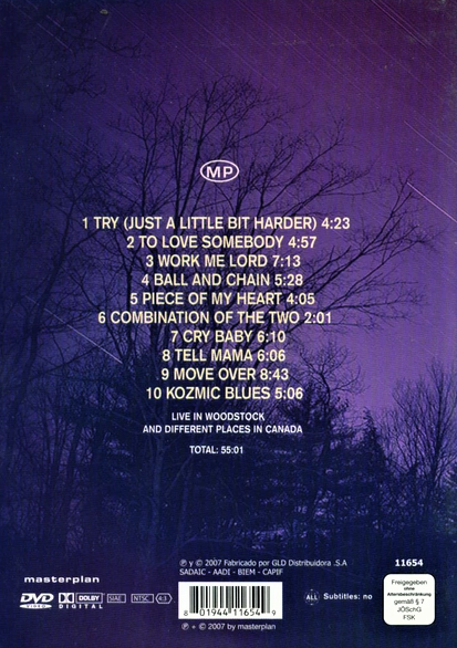 Artista(s) / Grupo: Janis Joplin | Cantidad de Discos: 1 | Lanzamiento: 2007 | Género(s): Rock, Blues | Estilo(s): Classic Rock | Título: Piece Of My Heart | Norma / Región: NTSC (Región 1, 4) | Artista(s) / Grupo: Janis Joplin | Cantidad de Discos: 1 | Lanzamiento: 2007 | Género(s): Rock, Blues | Estilo(s): Classic Rock | Título: Piece Of My Heart | Norma / Región: NTSC (Región 1, 4)