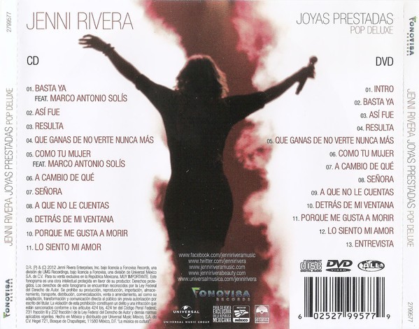 Artista(s) / Grupo: Jenni Rivera | Cantidad de Discos: 1 | Lanzamiento: 2012 | Género(s): Pop | Estilo(s): Latin | TÃtulo: Joyas Prestadas Pop | Artista(s) / Grupo: Jenni Rivera | Cantidad de Discos: 1 | Lanzamiento: 2012 | Género(s): Pop | Estilo(s): Latin | TÃtulo: Joyas Prestadas Pop