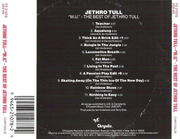 Artista(s) / Grupo: Jethro Tull | Cantidad de Discos: 1 | Género(s): Rock | Estilo(s): Folk Rock, Prog Rock, Classic Rock | Título: M.U. – The Best Of Jethro Tull | Artista(s) / Grupo: Jethro Tull | Cantidad de Discos: 1 | Género(s): Rock | Estilo(s): Folk Rock, Prog Rock, Classic Rock | Título: M.U. – The Best Of Jethro Tull