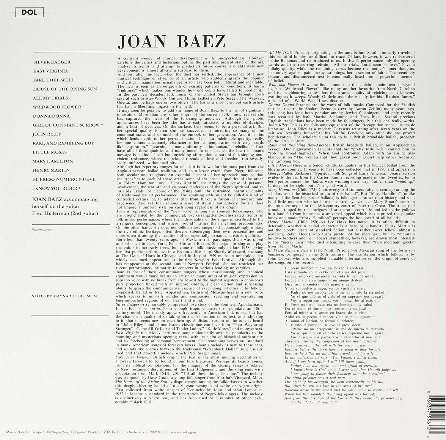 Artista(s) / Grupo: Joan Baez | Cantidad de Discos: 1 LP | Estilo(s): Folk, World, & Country | TÃtulo: Joan Baez | Sub-CategorÃas: Folk | Artista(s) / Grupo: Joan Baez | Cantidad de Discos: 1 LP | Estilo(s): Folk, World, & Country | TÃtulo: Joan Baez | Sub-CategorÃas: Folk
