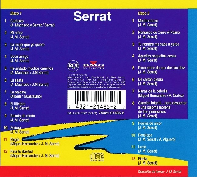 Artista(s) / Grupo: Joan Manuel Serrat | Cantidad de Discos: 2 | Lanzamiento: 2009 | Género(s): Latin, Folk, World, & Country | TÃtulo: AntologÃa 1968 – 1974 | Artista(s) / Grupo: Joan Manuel Serrat | Cantidad de Discos: 2 | Lanzamiento: 2009 | Género(s): Latin, Folk, World, & Country | TÃtulo: AntologÃa 1968 – 1974