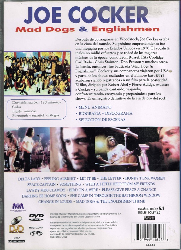 Artista(s) / Grupo: Joe Cocker | Cantidad de Discos: 1 | Lanzamiento: 2008 | Género(s): Rock | Estilo(s): Classic Rock | TÃtulo: Joe Cocker – Mad Dogs And Englishmen | Artista(s) / Grupo: Joe Cocker | Cantidad de Discos: 1 | Lanzamiento: 2008 | Género(s): Rock | Estilo(s): Classic Rock | TÃtulo: Joe Cocker – Mad Dogs And Englishmen