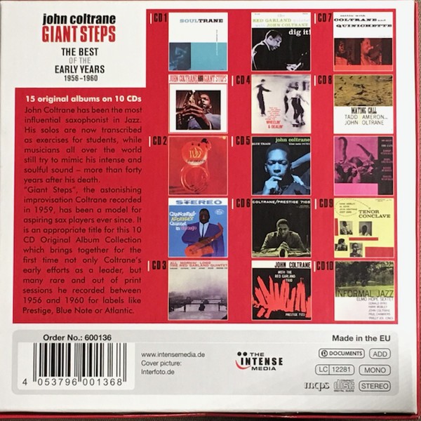 Artista(s) / Grupo: John Coltrane | Cantidad de Discos: 10 | Lanzamiento: 2014 | Género(s): Jazz | Estilo(s): Jazz | Título: Giant Steps – The Best of The Early Years 1956-1960 | Artista(s) / Grupo: John Coltrane | Cantidad de Discos: 10 | Lanzamiento: 2014 | Género(s): Jazz | Estilo(s): Jazz | Título: Giant Steps – The Best of The Early Years 1956-1960