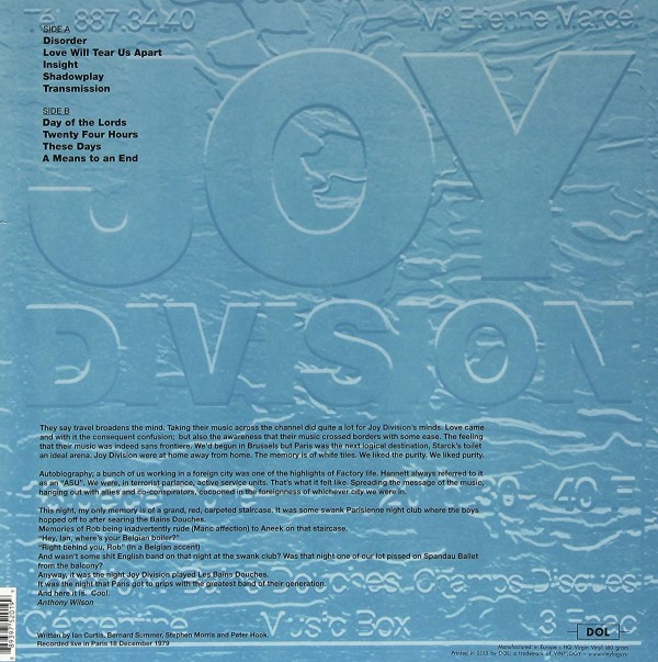 Artista(s) / Grupo: Joy Division | Cantidad de Discos: 1 LP | Estilo(s): Rock Progresivo | Título: Les Bains Douches | Sub-Categorías: Rock | Artista(s) / Grupo: Joy Division | Cantidad de Discos: 1 LP | Estilo(s): Rock Progresivo | Título: Les Bains Douches | Sub-Categorías: Rock
