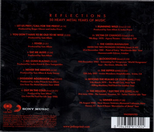 Artista(s) / Grupo: Judas Priest | Cantidad de Discos: 1 CD | Lanzamiento: 2021 | Género(s): Rock | Estilo(s): Heavy Metal | TÃtulo: Reflections – 50 Heavy Metal Years Of Music | Artista(s) / Grupo: Judas Priest | Cantidad de Discos: 1 CD | Lanzamiento: 2021 | Género(s): Rock | Estilo(s): Heavy Metal | TÃtulo: Reflections – 50 Heavy Metal Years Of Music