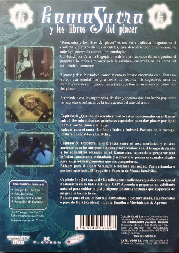 Cantidad de Discos: 1 | Lanzamiento: 1996 | Género(s): Serie de TV, Documental | Audio: Español | TÃtulo: KamaSutra y los libros del placer – CapÃtulos 4, 5 y 6 | Reparto: Reparto: Conducción: Caterina Hagopian | Norma / Región: NTSC (Región 1, 4) | Cantidad de Discos: 1 | Lanzamiento: 1996 | Género(s): Serie de TV, Documental | Audio: Español | TÃtulo: KamaSutra y los libros del placer – CapÃtulos 4, 5 y 6 | Reparto: Reparto: Conducción: Caterina Hagopian | Norma / Región: NTSC (Región 1, 4)