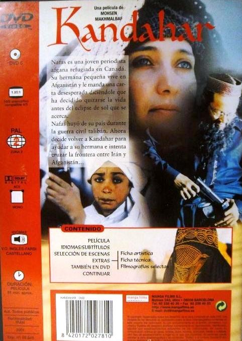 Cantidad de Discos: 1 | Lanzamiento: 2001 | Género(s): Drama | Audio: Inglés, Español, Francés | SubtÃtulos: Español, Inglés, Francés | TÃtulo: Kandahar | Director(es): Mohsen Makhmalbaf | Reparto: Nelofer Pazira, Hassan Tantaï, Sadou Teymouri, Hayatalah Hakimi | Norma / Región: PAL (Región 2) | Cantidad de Discos: 1 | Lanzamiento: 2001 | Género(s): Drama | Audio: Inglés, Español, Francés | SubtÃtulos: Español, Inglés, Francés | TÃtulo: Kandahar | Director(es): Mohsen Makhmalbaf | Reparto: Nelofer Pazira, Hassan Tantaï, Sadou Teymouri, Hayatalah Hakimi | Norma / Región: PAL (Región 2)