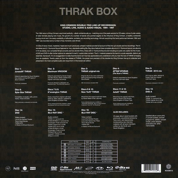 Artista(s) / Grupo: King Crimson | Cantidad de Discos: 2 BluRay + 2 DVD + 9 CD + Libro | Lanzamiento: 2015 | Género(s): Rock | Estilo(s): Prog Rock | TÃtulo: THRAK – Live And Studio Recordings 1994-1997 | Norma / Región: Multizona | Artista(s) / Grupo: King Crimson | Cantidad de Discos: 2 BluRay + 2 DVD + 9 CD + Libro | Lanzamiento: 2015 | Género(s): Rock | Estilo(s): Prog Rock | TÃtulo: THRAK – Live And Studio Recordings 1994-1997 | Norma / Región: Multizona | Artista(s) / Grupo: King Crimson | Cantidad de Discos: 2 BluRay + 2 DVD + 9 CD + Libro | Lanzamiento: 2015 | Género(s): Rock | Estilo(s): Prog Rock | TÃtulo: THRAK – Live And Studio Recordings 1994-1997 | Norma / Región: Multizona