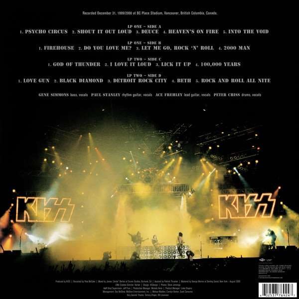 Artista(s) / Grupo: Kiss | Cantidad de Discos: 2 LP | Lanzamiento: 2014 | Género(s): Rock | Estilo(s): Hard Rock, Glam | TÃtulo: Alive – The Millennium Concert – Kiss | Artista(s) / Grupo: Kiss | Cantidad de Discos: 2 LP | Lanzamiento: 2014 | Género(s): Rock | Estilo(s): Hard Rock, Glam | TÃtulo: Alive – The Millennium Concert – Kiss