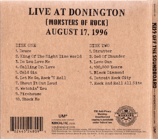 KISS – OFF THE SOUNDBOARD LIVE AT DONINGTON 1996 / MONSTERS OF ROCK