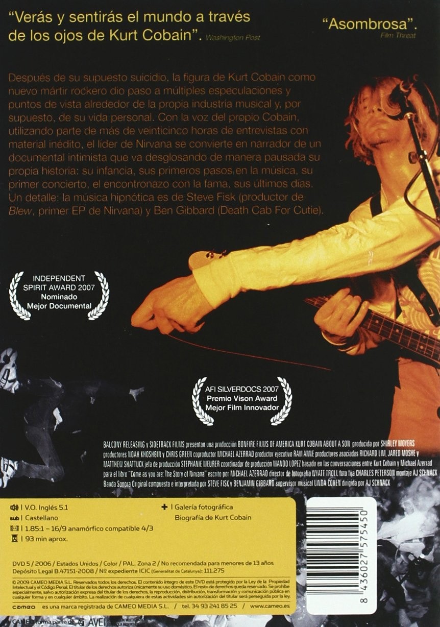 Cantidad de Discos: 1 | Lanzamiento: 2006 | Género(s): Documental, Musical | Audio: Inglés | Subtítulos: Español | Título: Kurt Cobain : About A Son | Norma / Región: PAL (Región 2) | Cantidad de Discos: 1 | Lanzamiento: 2006 | Género(s): Documental, Musical | Audio: Inglés | Subtítulos: Español | Título: Kurt Cobain : About A Son | Norma / Región: PAL (Región 2)