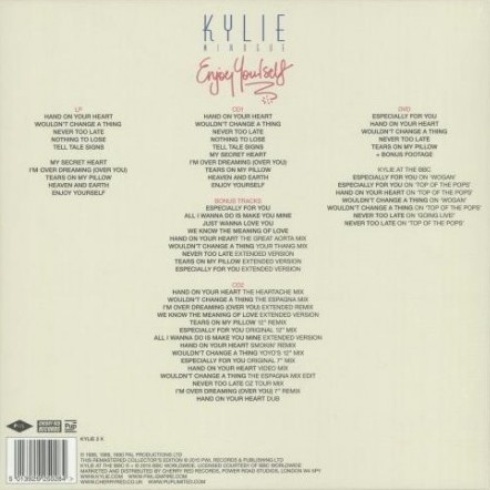Artista(s) / Grupo: Kylie Minogue | Cantidad de Discos: 1 LP + 1 DVD + 2 CD | Lanzamiento: 2015 | Estilo(s): Electronic, Abstract, Electro, Tribal | Título: Enjoy Youself | Artista(s) / Grupo: Kylie Minogue | Cantidad de Discos: 1 LP + 1 DVD + 2 CD | Lanzamiento: 2015 | Estilo(s): Electronic, Abstract, Electro, Tribal | Título: Enjoy Youself | Artista(s) / Grupo: Kylie Minogue | Cantidad de Discos: 1 LP + 1 DVD + 2 CD | Lanzamiento: 2015 | Estilo(s): Electronic, Abstract, Electro, Tribal | Título: Enjoy Youself