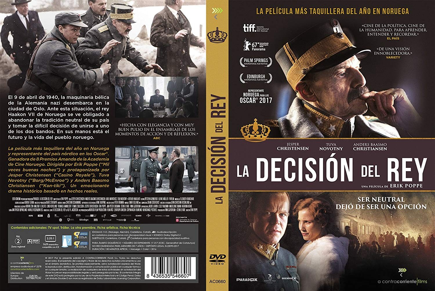 Cantidad de Discos: 1 | Audio: Noruego, Alemán, Español, Catalán | SubtÃtulos: Español, Catalán | TÃtulo: La Decisión del Rey | Director(es): Erik Poppe | Reparto: Jesper Christensen, Anders Baasmo Christiansen, Tuva Novotny, Juliane Köhler, Katharina Schüttler | Norma / Región: PAL (Región 2) | Cantidad de Discos: 1 | Audio: Noruego, Alemán, Español, Catalán | SubtÃtulos: Español, Catalán | TÃtulo: La Decisión del Rey | Director(es): Erik Poppe | Reparto: Jesper Christensen, Anders Baasmo Christiansen, Tuva Novotny, Juliane Köhler, Katharina Schüttler | Norma / Región: PAL (Región 2)