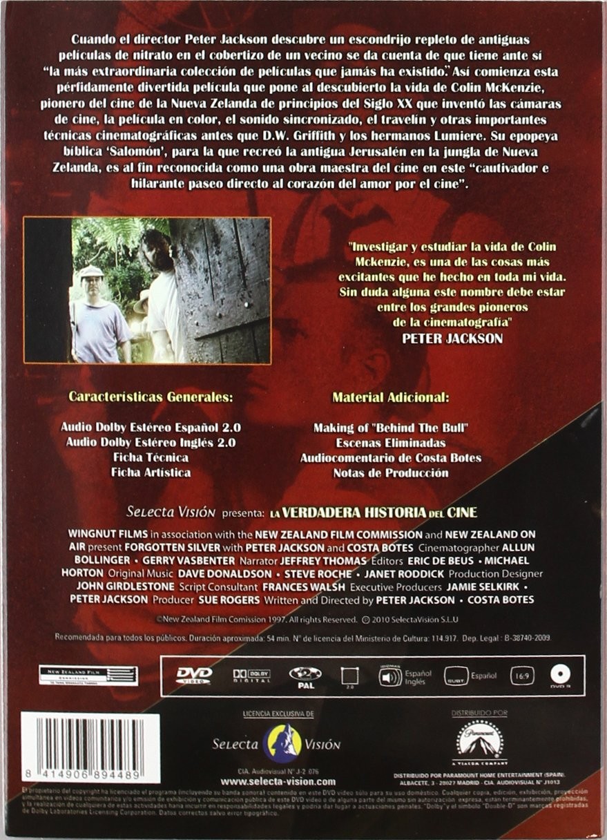 Cuando el director Peter Jackson descubre un escondrijo repleto de antiguas películas de nitrato en el cobertizo de un vecino se da cuenta de que tiene ante sí «la más extraordinaria colección de películas que jamás ha existido. Imagina que Ciudadano Kane apareciera de repente caída del cielo». Así comienza Forgotten Silver, esta pérfidamente divertida y aún así del todo creíble película que pone al descubierto la vida de Colin McKenzie, pionero del cine de la Nueva Zelanda de principios del Siglo XX que inventó las cámaras de cine, la película en color, el sonido sincronizado, el travelín y otras importantes técnicas cinematográficas antes que D.W. Griffith y los hermanos Lumiere. Su epopeya bíblica ‘Salomón’, para la que recreó la antigua Jerusalén en la jungla de Nueva Zelanda, es al fin reconocida como una obra maestra del cine en este «cautivador e hilarante paseo directo al corazón del amor por el cine».