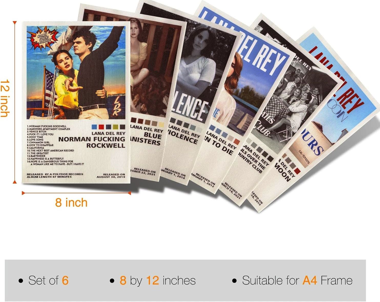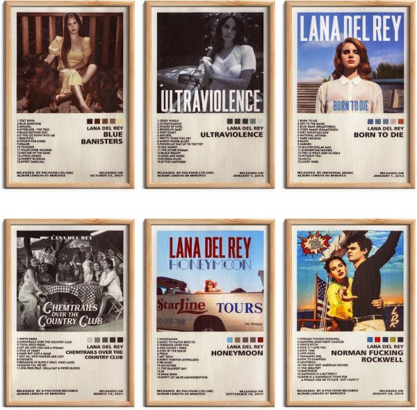 Lana Del Rey – Juego de 6 pósteres musicales de 8 x 12 pulgadas, sin marco, decoración de pared para habitación de adolescentes