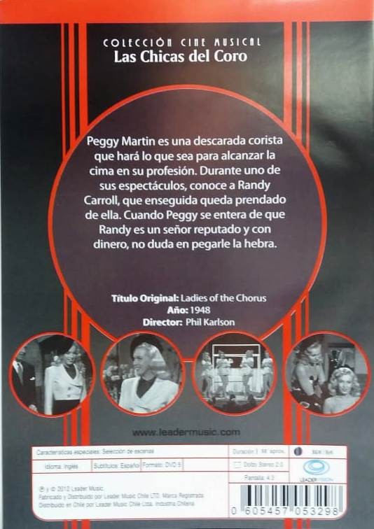 Cantidad de Discos: 1 | Lanzamiento: 2012 | Género(s): Comedia Musical | Audio: Inglés (Dolby Digital 2,0 Stereo) | SubtÃtulos: Español | TÃtulo: Ladies of the Chorus (1948) | Director(es): Phil Karlson | Reparto: Adele Jergens, Marilyn Monroe, Rand Brooks, Nana Bryant, Eddie Garr, Steven Geray | Norma / Región: NTSC (Región 1, 4) | Cantidad de Discos: 1 | Lanzamiento: 2012 | Género(s): Comedia Musical | Audio: Inglés (Dolby Digital 2,0 Stereo) | SubtÃtulos: Español | TÃtulo: Ladies of the Chorus (1948) | Director(es): Phil Karlson | Reparto: Adele Jergens, Marilyn Monroe, Rand Brooks, Nana Bryant, Eddie Garr, Steven Geray | Norma / Región: NTSC (Región 1, 4)