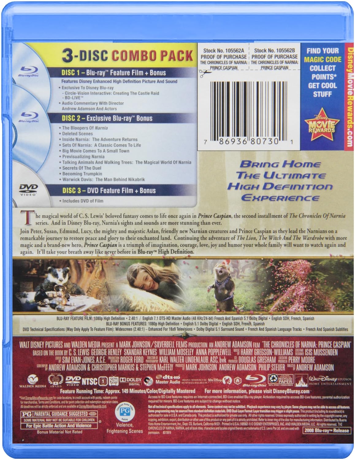 Reparto: Ben Barnes, Georgie Henley, Skandar Keynes, William Moseley, Anna Popplewell, Georgie Henley, Sergio Castellitto, Alicia Borrachero, Peter Dinklage, Warwick Davis, Pierfrancesco Favino, Cornell John, Simón Andreu, Predrag Bjelac, Vincent Grass, Damián Alcázar, Juan Diego Montoya Garcia, Tilda Swinton