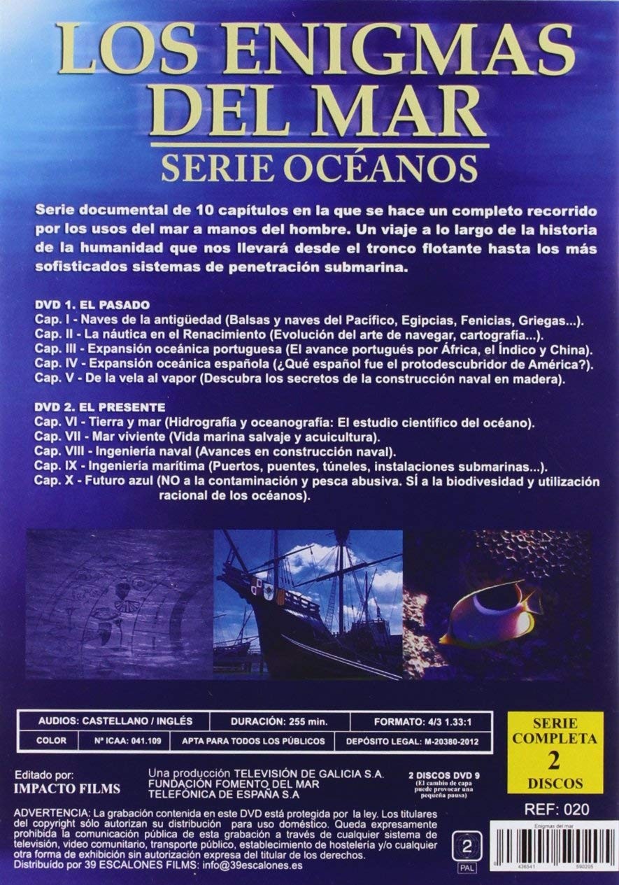 Cantidad de Discos: 2 | Lanzamiento: 2012 | Género(s): Documental | Audio: castellano, ingles | Título: Las enigmas del mar – serie océanos | Director(es): varios | Reparto: varios | Norma / Región: PAL (Región 2) | Cantidad de Discos: 2 | Lanzamiento: 2012 | Género(s): Documental | Audio: castellano, ingles | Título: Las enigmas del mar – serie océanos | Director(es): varios | Reparto: varios | Norma / Región: PAL (Región 2)