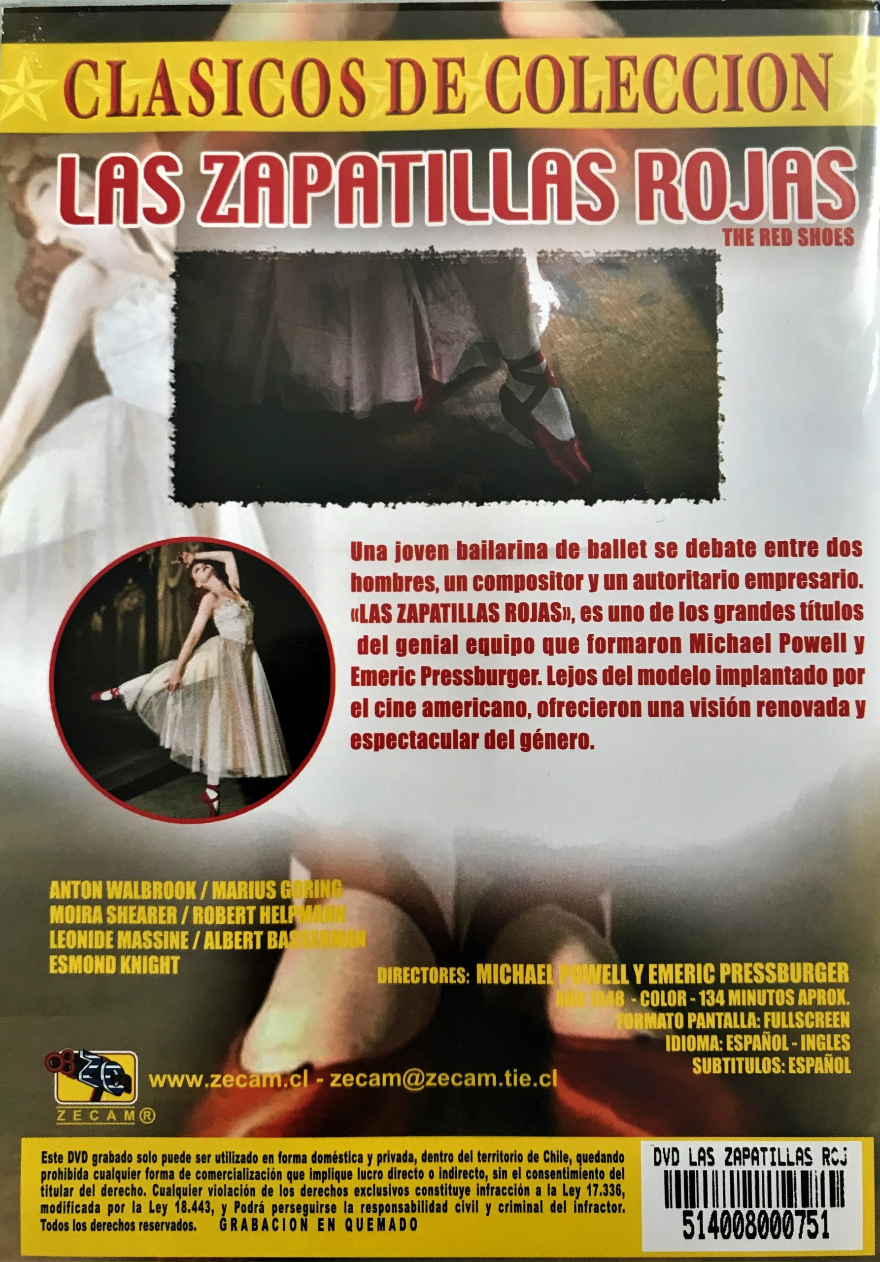 Cantidad de Discos: 1 | Lanzamiento: 2010 | Género(s): Drama | Audio: Inglés, Español | Subtítulos: Español | Título: Las zapatillas rojas (1948) | Director(es): Michael Powell, Emeric Pressburger | Reparto: Anton Walbrook, Moira Shearer, Marius Goring, Leonid Massine, Albert Basserman, Robert Helpmann, Ludmilla Tcherina, Esmond Knight | Norma / Región: Multizona | Cantidad de Discos: 1 | Lanzamiento: 2010 | Género(s): Drama | Audio: Inglés, Español | Subtítulos: Español | Título: Las zapatillas rojas (1948) | Director(es): Michael Powell, Emeric Pressburger | Reparto: Anton Walbrook, Moira Shearer, Marius Goring, Leonid Massine, Albert Basserman, Robert Helpmann, Ludmilla Tcherina, Esmond Knight | Norma / Región: Multizona