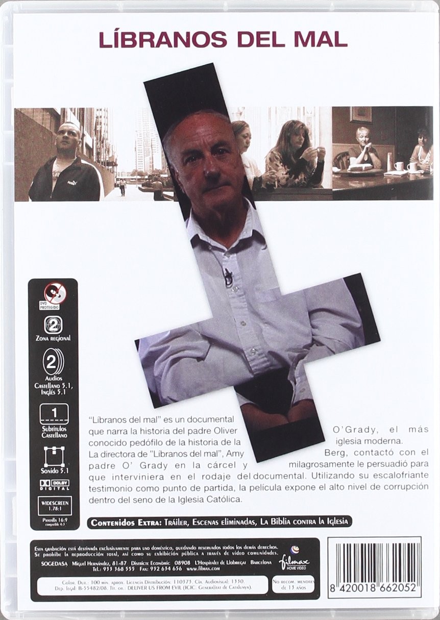 Cantidad de Discos: 1 DVD | Lanzamiento: 2006 | Género(s): Documental, Religión | Audio: Español, Inglés | SubtÃtulos: Español | TÃtulo: Deliver Us From Evil | Director(es): Amy Berg | Reparto: Oliver O’Grady, Jeff Anderson, Pope Benedict XVI, Monsignor Cain, Case Degroot, Jane Degroot, Thomas Doyle, Mary Gail Frawley-O’Dea, Bill Hodgman, Anne Jyono, Bob Jyono, Maria Jyono, Frank Keating, Roger Mahony, John Manly, Nancy Sloan, Mike Walker, Patrick Wall, Paula Zahn | Norma / Región: PAL 2 | Cantidad de Discos: 1 DVD | Lanzamiento: 2006 | Género(s): Documental, Religión | Audio: Español, Inglés | SubtÃtulos: Español | TÃtulo: Deliver Us From Evil | Director(es): Amy Berg | Reparto: Oliver O’Grady, Jeff Anderson, Pope Benedict XVI, Monsignor Cain, Case Degroot, Jane Degroot, Thomas Doyle, Mary Gail Frawley-O’Dea, Bill Hodgman, Anne Jyono, Bob Jyono, Maria Jyono, Frank Keating, Roger Mahony, John Manly, Nancy Sloan, Mike Walker, Patrick Wall, Paula Zahn | Norma / Región: PAL 2