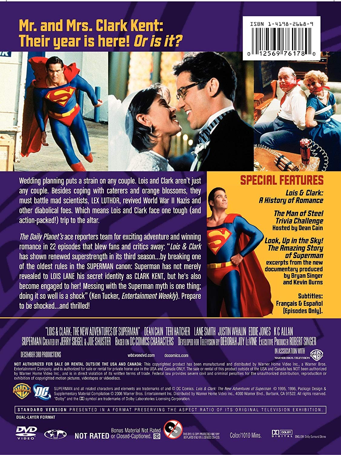 Cantidad de Discos: 6 DVD | Lanzamiento: 2006 | Género(s): Serie de TV, Ciencia ficción, Aventuras | Audio: Inglés | SubtÃtulos: Francés, Español | Director(es): Robert Singer | Reparto: Dean Cain, Teri Hatcher, Justin Whalin, Lane Smith, K Callan | Sub-CategorÃas: Acción | Norma / Región: NTSC (Región 1, 4) | Series: DC Comics | Cantidad de Discos: 6 DVD | Lanzamiento: 2006 | Género(s): Serie de TV, Ciencia ficción, Aventuras | Audio: Inglés | SubtÃtulos: Francés, Español | Director(es): Robert Singer | Reparto: Dean Cain, Teri Hatcher, Justin Whalin, Lane Smith, K Callan | Sub-CategorÃas: Acción | Norma / Región: NTSC (Región 1, 4) | Series: DC Comics