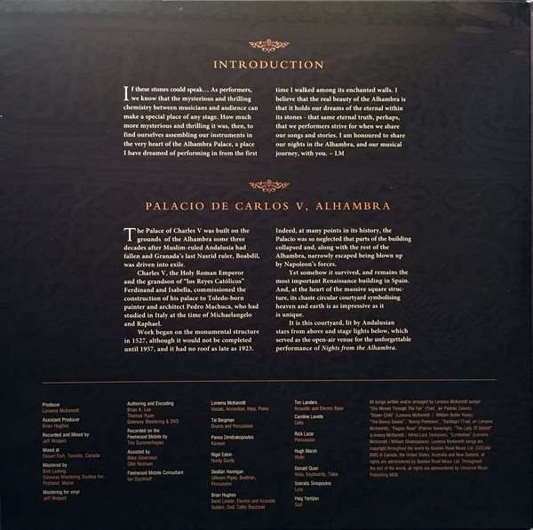 Artista(s) / Grupo: Loreena McKennitt | Cantidad de Discos: 2 LP | Lanzamiento: 2014 | Género(s): Rock | Estilo(s): Prog Rock, Folk Rock | TÃtulo: Nights From The Alhambra – Loreena McKennitt | Artista(s) / Grupo: Loreena McKennitt | Cantidad de Discos: 2 LP | Lanzamiento: 2014 | Género(s): Rock | Estilo(s): Prog Rock, Folk Rock | TÃtulo: Nights From The Alhambra – Loreena McKennitt