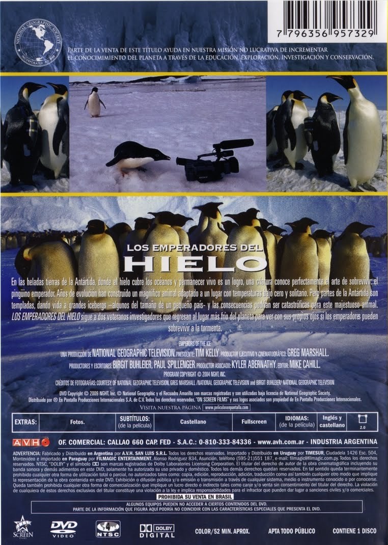Cantidad de Discos: 1 | Lanzamiento: 2009 | Género(s): Documental | Audio: Español (Dolby Digital 2,0) | TÃtulo: Emperors of the Ice | Director(es): Greg Marshall | Norma / Región: NTSC (Región 1, 4) | Series: Nat Geo | Cantidad de Discos: 1 | Lanzamiento: 2009 | Género(s): Documental | Audio: Español (Dolby Digital 2,0) | TÃtulo: Emperors of the Ice | Director(es): Greg Marshall | Norma / Región: NTSC (Región 1, 4) | Series: Nat Geo