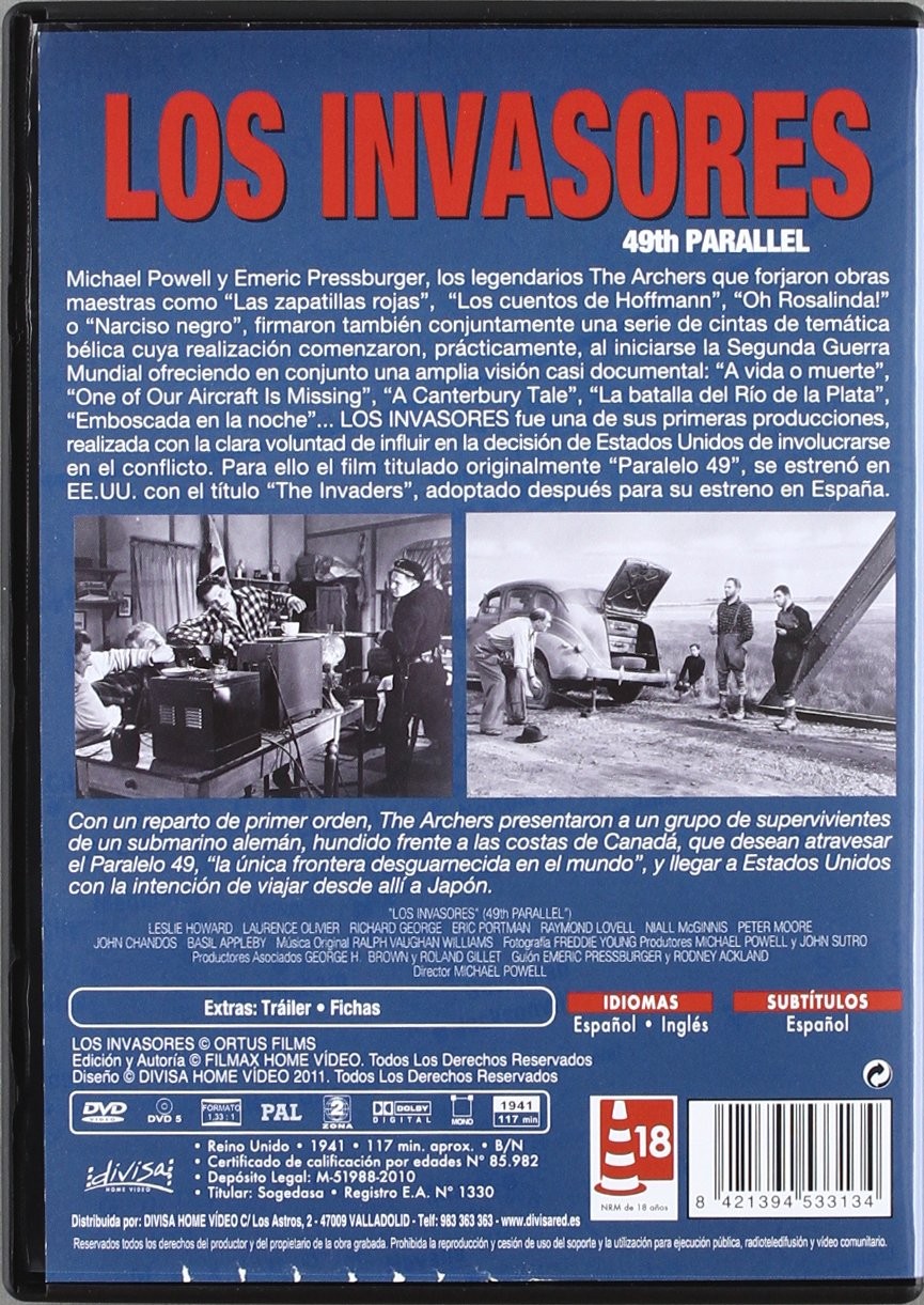 Cantidad de Discos: 1 | Lanzamiento: 2012 | Género(s): Bélico, Drama | Audio: Español, Inglés | SubtÃtulos: Español | TÃtulo: 49th Parallel (1941) | Director(es): Michael Powell | Reparto: Eric Portman, Leslie Howard, Laurence Olivier, Raymond Massey, Anton Walbrook, Glynis Johns, Niall MacGinnis, Finlay Currie, Raymond Lovell, John Chandos, Basil Appleby, Eric Clavering, Charles Victor, Ley On, Richard George | Norma / Región: PAL (Región 2) | Cantidad de Discos: 1 | Lanzamiento: 2012 | Género(s): Bélico, Drama | Audio: Español, Inglés | SubtÃtulos: Español | TÃtulo: 49th Parallel (1941) | Director(es): Michael Powell | Reparto: Eric Portman, Leslie Howard, Laurence Olivier, Raymond Massey, Anton Walbrook, Glynis Johns, Niall MacGinnis, Finlay Currie, Raymond Lovell, John Chandos, Basil Appleby, Eric Clavering, Charles Victor, Ley On, Richard George | Norma / Región: PAL (Región 2)