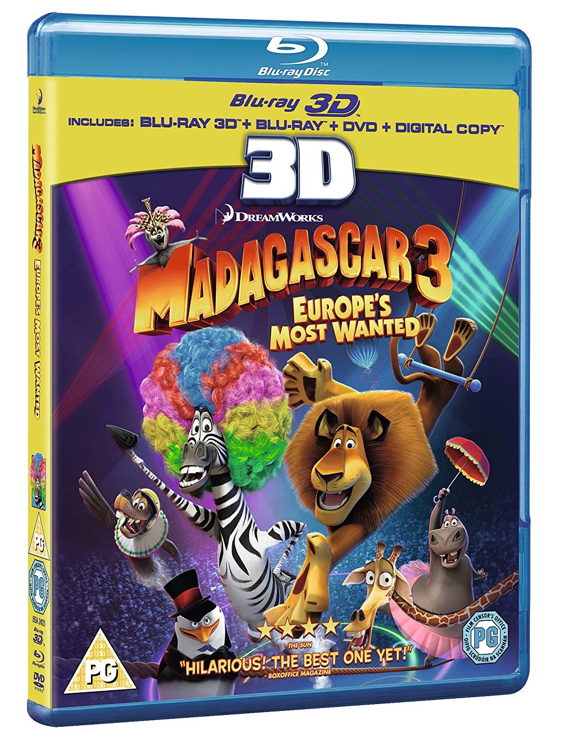 Cantidad de Discos: 1 3D + 1 BluRay + 1 DVD | Lanzamiento: 2012 | Género(s): Animación | Audio: Inglés (DTS-HD Master Audio 7.1), Inglés (Descriptive Audio 5.1), Español( Dolby Digital 5.1), Francés (Dolby Digital 5.1) | Subtítulos: Español, Inglés, Francés | Título: Madagascar 3: Los fugitivos | Director(es): Eric Darnell, Conrad Vernon, Tom McGrath | Sub-Categorías: Animación | Norma / Región: NTSC 1