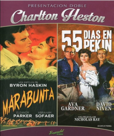 Cantidad de Discos: 1 | Lanzamiento: 2014 | Género(s): Drama | Audio: Inglés | SubtÃtulos: Español | TÃtulo: Marabunta / 55 Dias en Pekin | Director(es): Byron Haskin / Nicholas Ray | Reparto: Charlton Heston, Eleanor Parker, Abraham Sofaer / Charlton Heston, Ava Gardner, David Niven | Norma / Región: Multizona