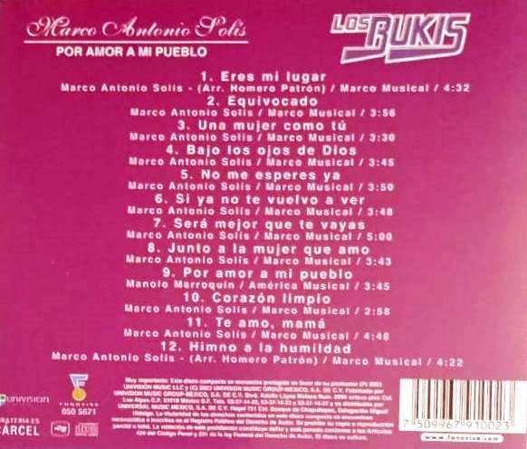 Artista(s) / Grupo: Marco Antonio SolÃs | Cantidad de Discos: 1 | Lanzamiento: 2015 | Estilo(s): Latin | TÃtulo: Por Amor A Mi Pueblo | Norma / Región: NTSC (Región 1, 4) | Artista(s) / Grupo: Marco Antonio SolÃs | Cantidad de Discos: 1 | Lanzamiento: 2015 | Estilo(s): Latin | TÃtulo: Por Amor A Mi Pueblo | Norma / Región: NTSC (Región 1, 4)