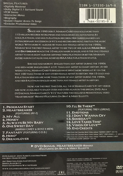 Artista(s) / Grupo: Mariah Carey | Lanzamiento: 1999 | Género(s): Pop, Hip Hop | Estilo(s): RnB/Swing, Ballad | TÃtulo: #1’s | Norma / Región: PAL Multizona | Artista(s) / Grupo: Mariah Carey | Lanzamiento: 1999 | Género(s): Pop, Hip Hop | Estilo(s): RnB/Swing, Ballad | TÃtulo: #1’s | Norma / Región: PAL Multizona