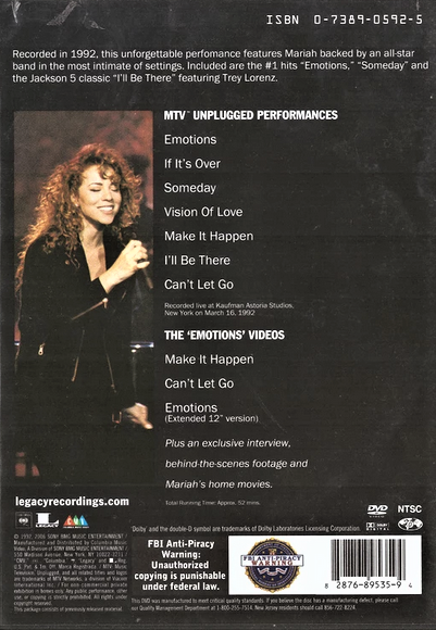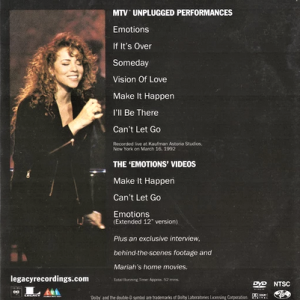 Artista(s) / Grupo: Mariah Carey | Cantidad de Discos: 1 | Lanzamiento: 2006 | Género(s): Funk / Soul, Pop | Estilo(s): Gospel, Rhythm & Blues, Soul | TÃtulo: MTV Unplugged +3 | Norma / Región: NTSC (Región 1, 4) | Artista(s) / Grupo: Mariah Carey | Cantidad de Discos: 1 | Lanzamiento: 2006 | Género(s): Funk / Soul, Pop | Estilo(s): Gospel, Rhythm & Blues, Soul | TÃtulo: MTV Unplugged +3 | Norma / Región: NTSC (Región 1, 4)
