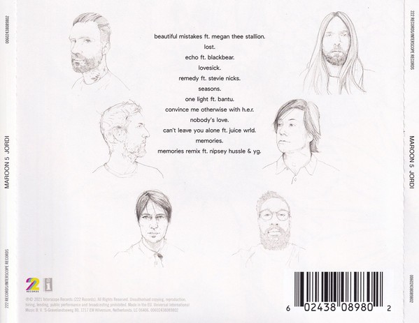 Artista(s) / Grupo: Maroon 5 | Cantidad de Discos: 1 CD | Lanzamiento: 2021 | Género(s): Pop, Rock, Electronic | Estilo(s): House, Pop Rock, Funk Rock, Dance-Pop | Título: Jordi | Artista(s) / Grupo: Maroon 5 | Cantidad de Discos: 1 CD | Lanzamiento: 2021 | Género(s): Pop, Rock, Electronic | Estilo(s): House, Pop Rock, Funk Rock, Dance-Pop | Título: Jordi